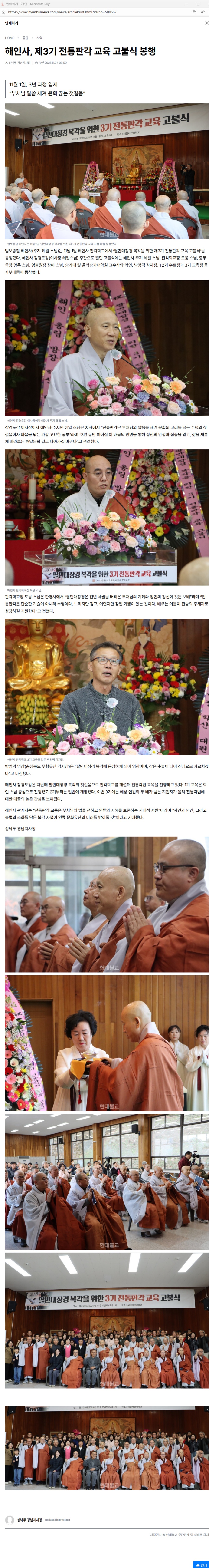 [현대불교] 해인사, 제3기 전통판각 교육 고불식 봉행