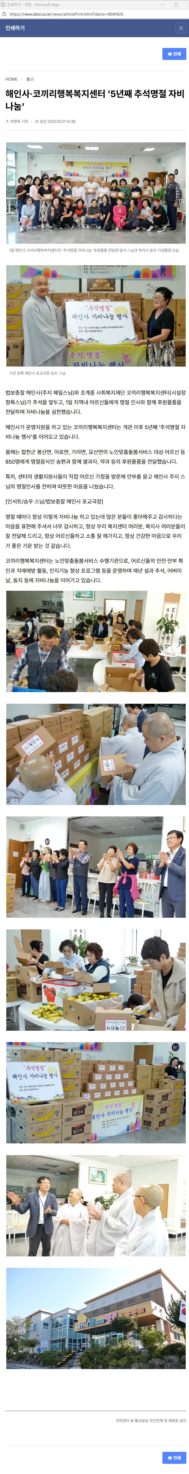 [BBS] 해인사·코끼리행복복지센터 '5년째 추석명절 자비나눔' > 미디어 속 해인사