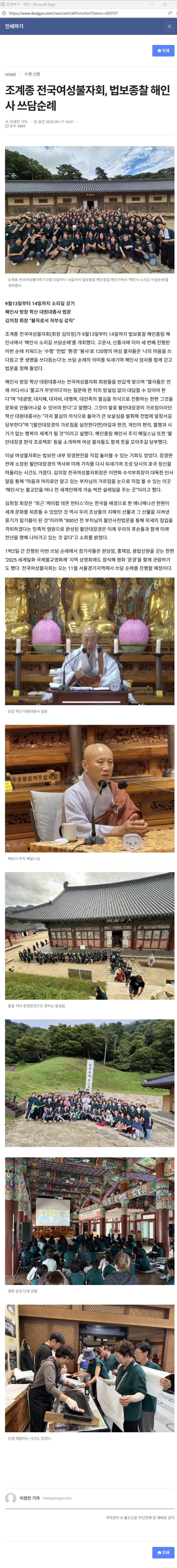 [불교신문] 조계종 전국여성불자회, 법보종찰 해인사 쓰담순례 > 미디어 속 해인사