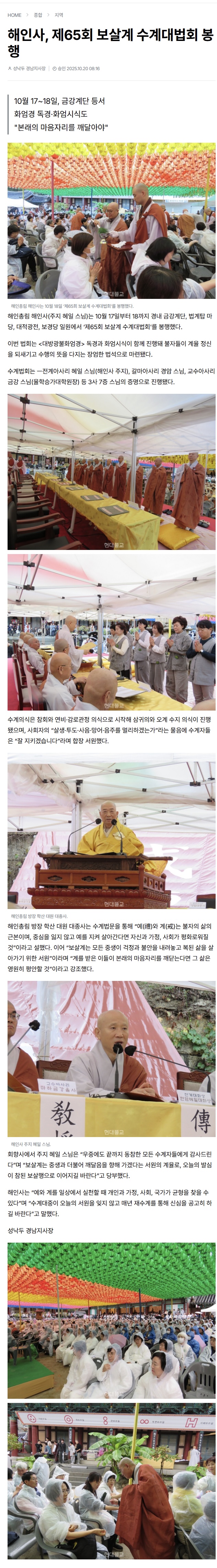 [현대불교] 해인사, 제65회 보살계 수계대법회 봉행 페이지 정보 작성자 관리자 작성일25-10-24 09:19 조회161회 댓글0건 본문 <기사 원문 보러 가기> 해인사, 제65회 보살계 수계대법회 봉행 댓글목록 등록된 댓글이 없습니다. 다음글 목록